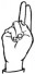 На ћирилици написано БРНЧА СТАНОЈЕВИЋ састоји се из 15 слова [?]. Исписано ћириличном једноручном азбуком за глувонеме: